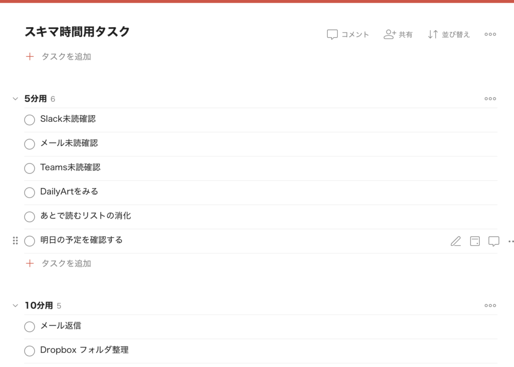 スキマ時間用タスクリストを作成しよう!