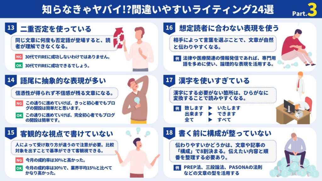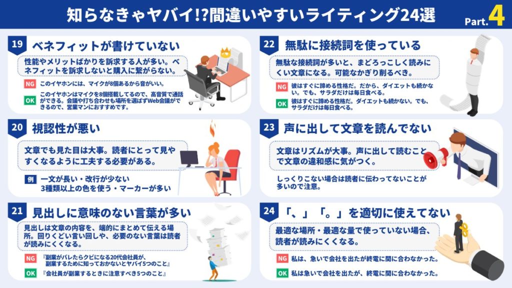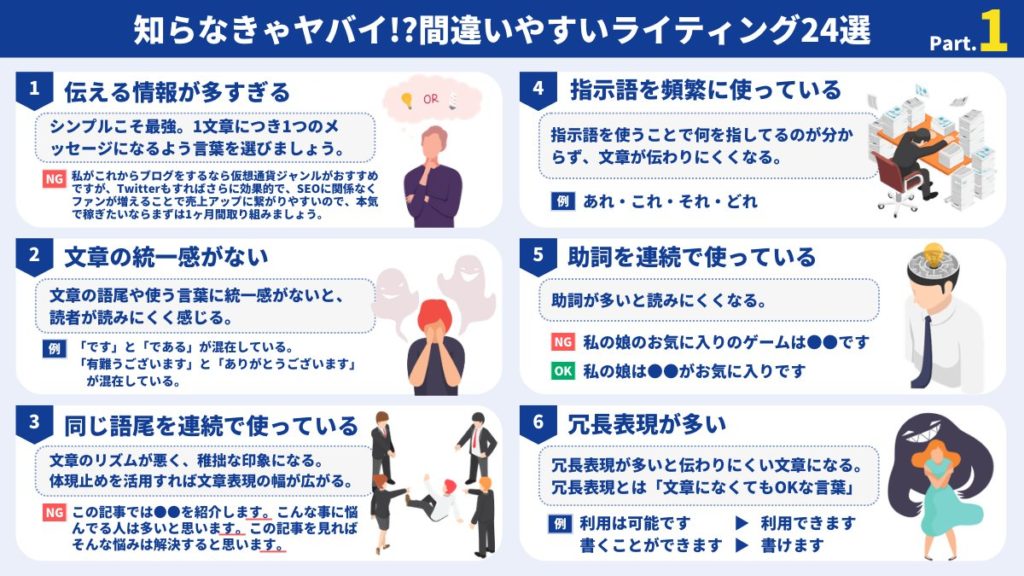 今回は、しかまるさんという方の「文章が上手くなるスキル24選」のまとめです。このまとめ以外にもYouTubeやWEBスクールなどもされているようなので、さらに興味のある方はプロフィールのほうから見てみてください。